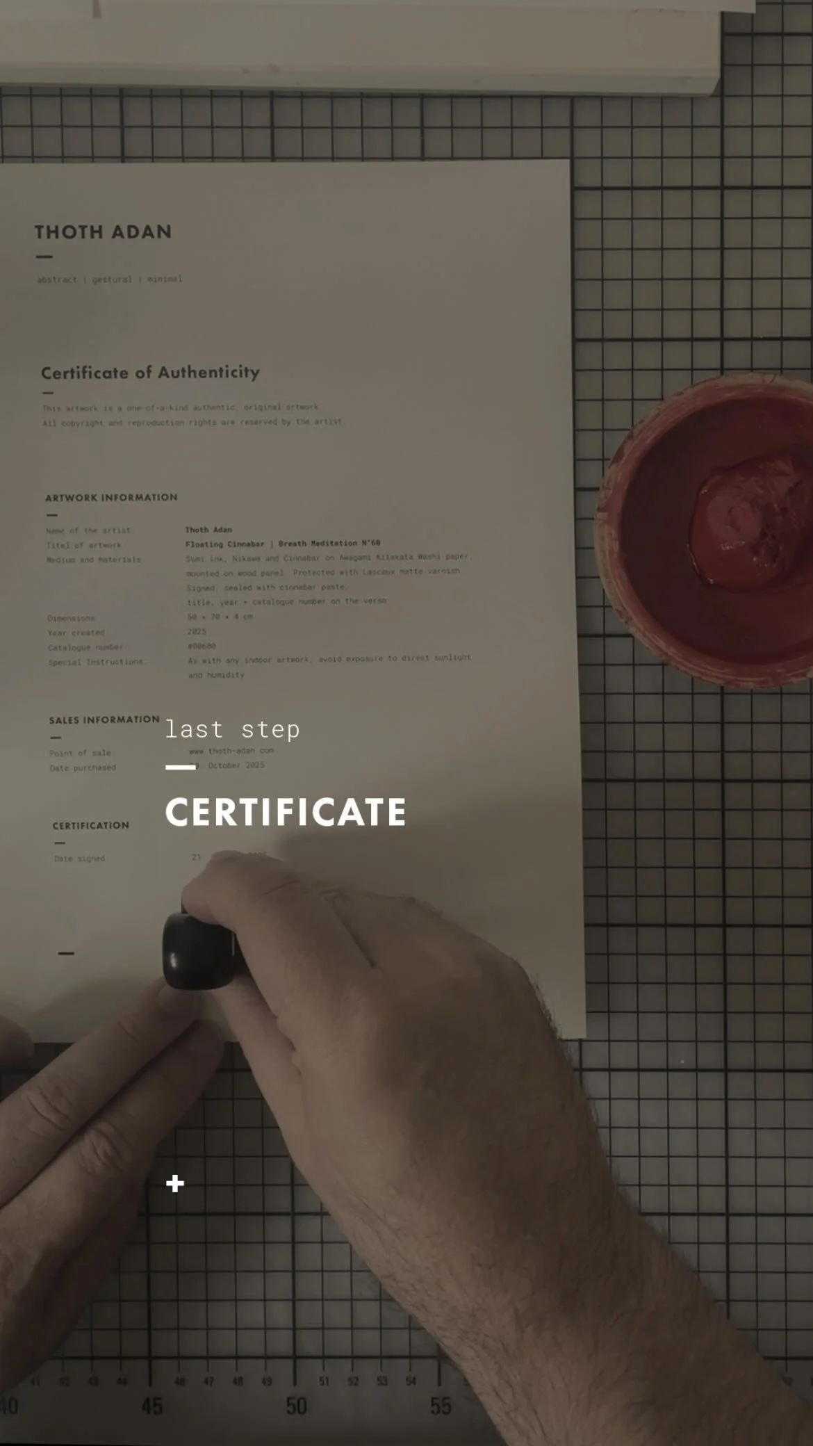 Thoth is a Swiss-born, Austrian-based artist who primarily works with Sumi ink and mineral pigments on Japanese Washi paper. His paintings are abstract, minimal, gestural and introspective, drawing inspiration from Eastern philosophies and aesthetics, and Western art movements such as Abstract Expressionism and Post-Minimalism. You are invited to read more about his background and personal approach.