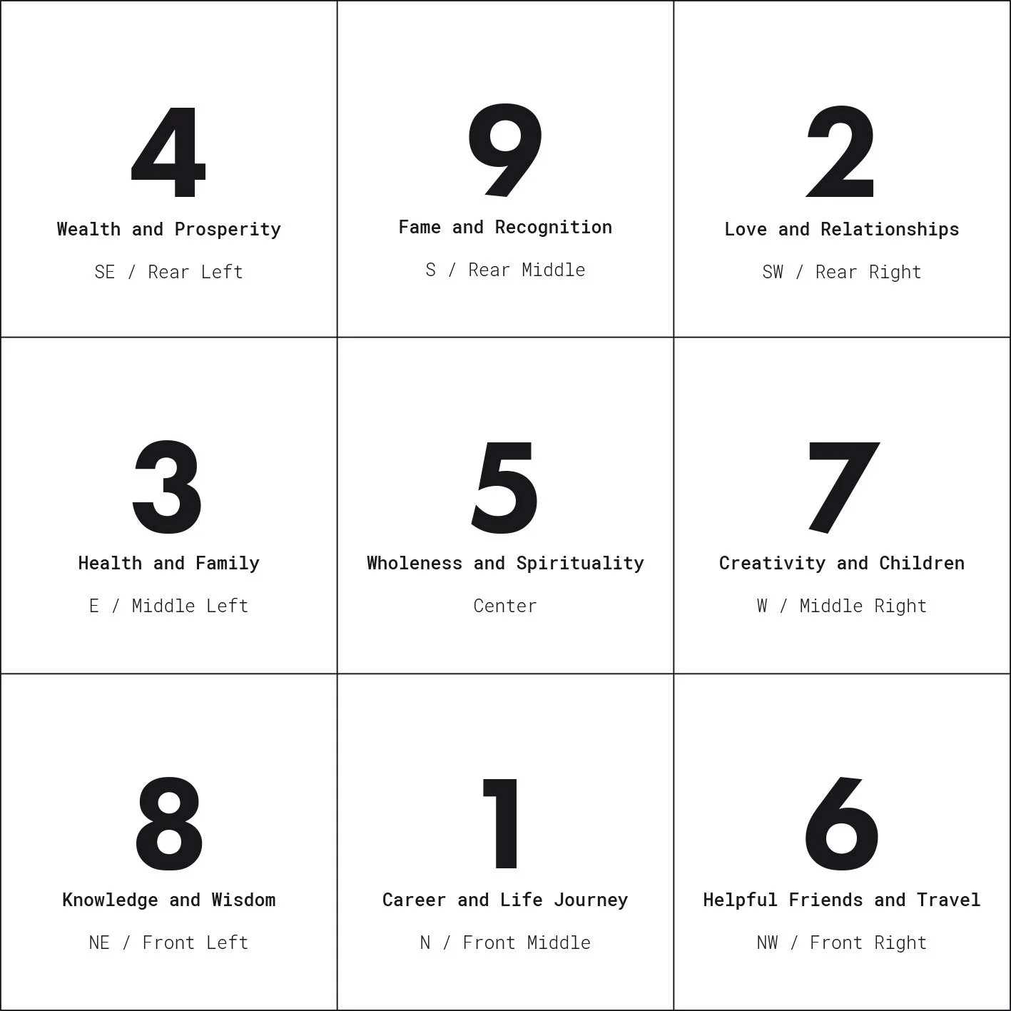 Attention! On Chinese plans and maps the starting point (North or front door) is on the bottom of the page, not at the top! From this point, all the nine squares line up.