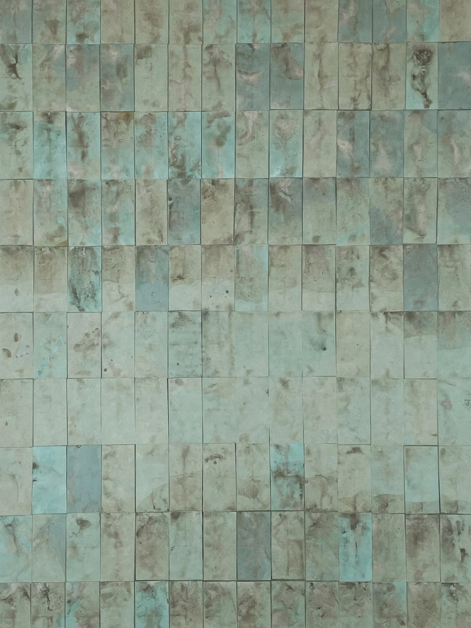 Other artworks, mainly on wood panels, emphasize the reclaimed character of reassembled materials, embracing the Wabi-Sabi philosophy of imperfection. Thoth preferably cuts the fragments into uniform units, inspired by the proportions of traditional Tatami¹ mats, and reassembles them meticulously.