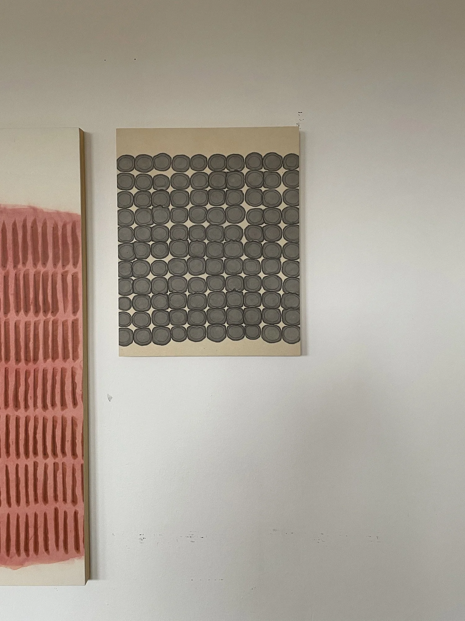 The Breath Meditation paintings are a direct result of an active meditation practice, where inhalations and exhalations are counted, and a mark is made after each complete breath cycle.