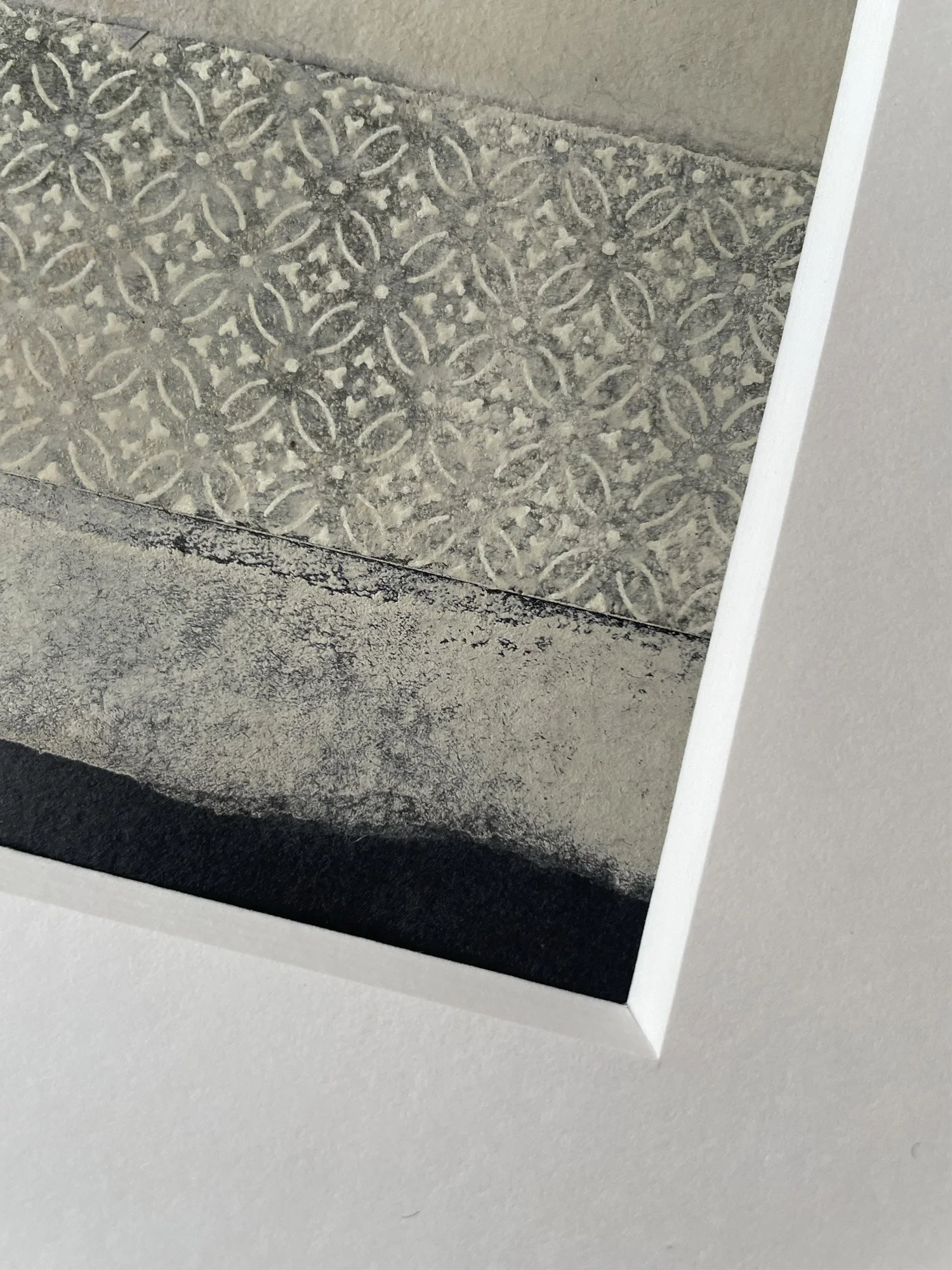 Sumi ink, Nikawa, walnut ink and mineral pigments (Slate Green) on reclaimed Washi papers, mounted on Fabriano Artistico