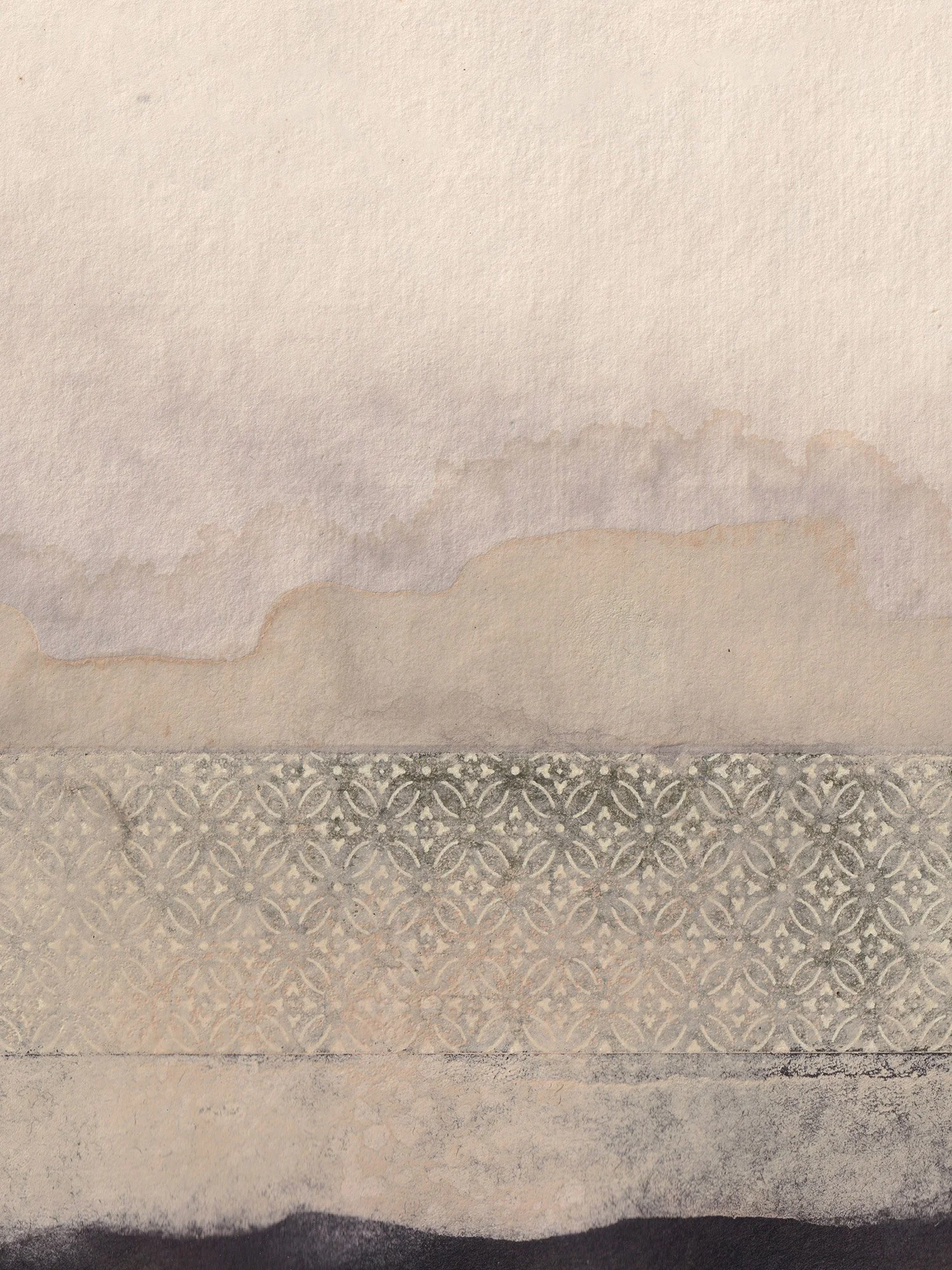 The Fragmentation paintings are based on discarded Washi papers. Reassembled and rearranged, Thoth draws inspiration from Japanese Boro techniques to create new compositions, embracing the beauty of imperfection and the philosophy of Wabi-Sabi.